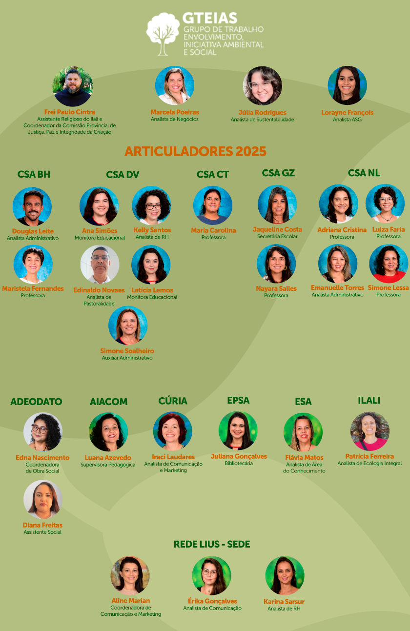 O Grupo de Trabalho, Envolvimento, Iniciativa Ambiental e Social (GTEIAS) é uma aliança entre dois elementos: a necessidade de representantes de sustentabilidade em todas as unidades da Sociedade Inteligência e Coração (SIC) e uma alusão à teia da vida, na qual tudo está em conexão e todos atentos aos contextos.